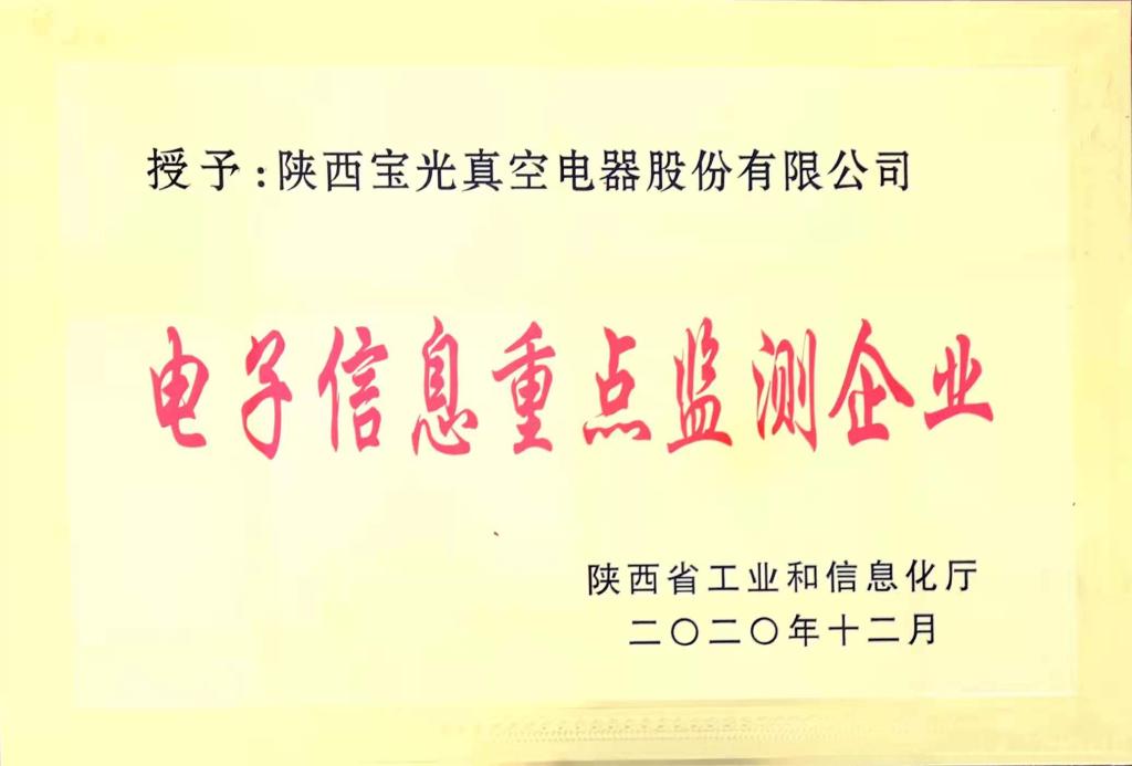 2020年12月21日,陜西省工信廳“2020年全省電子信息重點監(jiān)測企業(yè)統(tǒng)計調(diào)查暨運行監(jiān)測會議”在西安召開,我公司入選會議30戶重點監(jiān)測企業(yè),企業(yè)管理處負責人代表我公司上臺領(lǐng)取授牌。