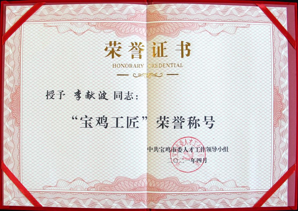 4月28日上午,寶雞市慶祝“五一”國際勞動節(jié)大會在寶雞市職工文化中心召開。會上,寶光股份滅弧室產(chǎn)品制造部高溫封接工段長李獻(xiàn)波榮獲“寶雞工匠”榮譽(yù)稱號。
