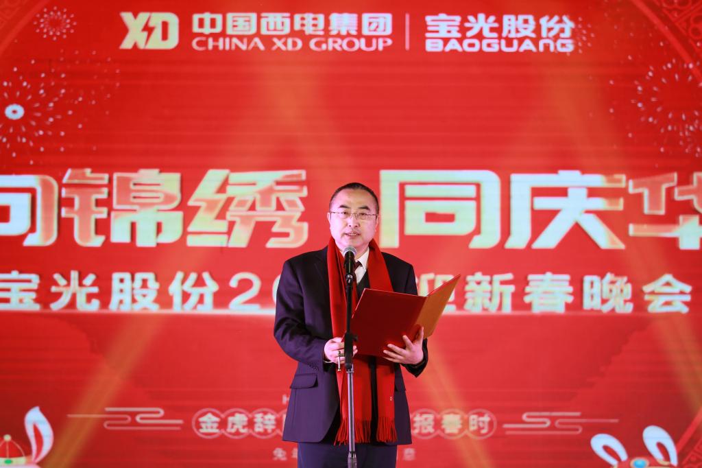在送吉祥環(huán)節(jié),技術(shù)骨干、職工代表、全國勞模、新入職大學(xué)生紛紛為大家送上了新春祝福。謝洪濤致辭,向全體干部職工致以新春的祝賀。他指出,過去的一年,是寶光股份踔厲奮發(fā)、再創(chuàng)輝煌的一年,我們回首來路,堅(jiān)定前行;我們相互關(guān)愛、同氣連枝。公司用新智造賦能新優(yōu)勢、用新突破引領(lǐng)新未來、用新業(yè)態(tài)啟航新發(fā)展。我們在困難挑戰(zhàn)前涅槃蛻變,我們在務(wù)實(shí)求索中永爭第一!新的一年里,公司將深化發(fā)力“主業(yè)突出、相關(guān)多元”戰(zhàn)略,以黨建引領(lǐng)和科技創(chuàng)新雙引擎,緊扣“真空滅弧室主業(yè)行業(yè)、金屬化瓷殼市場占有率、國內(nèi)儲能調(diào)頻技術(shù)”三個(gè)第一目標(biāo),步履不停,微笑前行,全力向著十四五登高目標(biāo)拾階而上、極目遠(yuǎn)望、勇攀高峰!