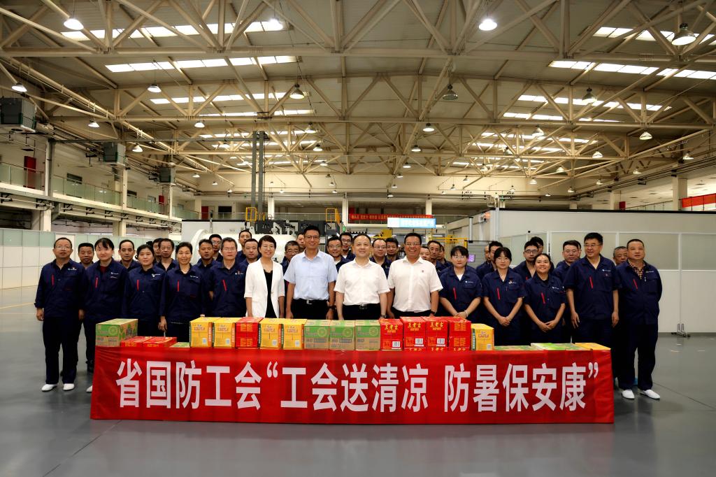 靳海斌一行來公司慰問職工“送清涼”,帶來了省國防工會(huì)的關(guān)懷和厚愛,一聲聲親切貼心的問候,一句句熱情洋溢的話語,一份份貼心的清涼用品,讓在場(chǎng)的一線職工深切感受到上級(jí)工會(huì)組織的關(guān)心與問候,讓職工們感受到了“娘家人”的溫暖。