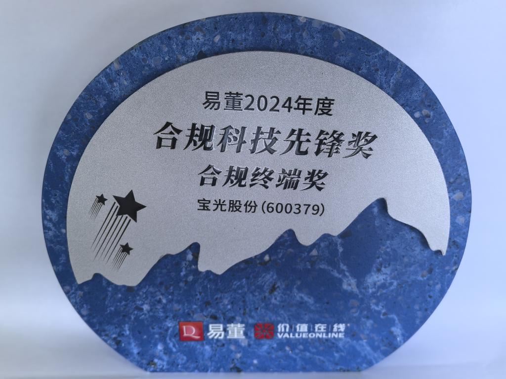 近日,由價值在線、董事會雜志社聯(lián)合主辦的易董2024年度合規(guī)科技先鋒獎揭曉。寶光股份憑借在合規(guī)管理工作上的優(yōu)異表現(xiàn),斬獲“易董2024年度合規(guī)科技先鋒獎——合規(guī)終端獎”。
