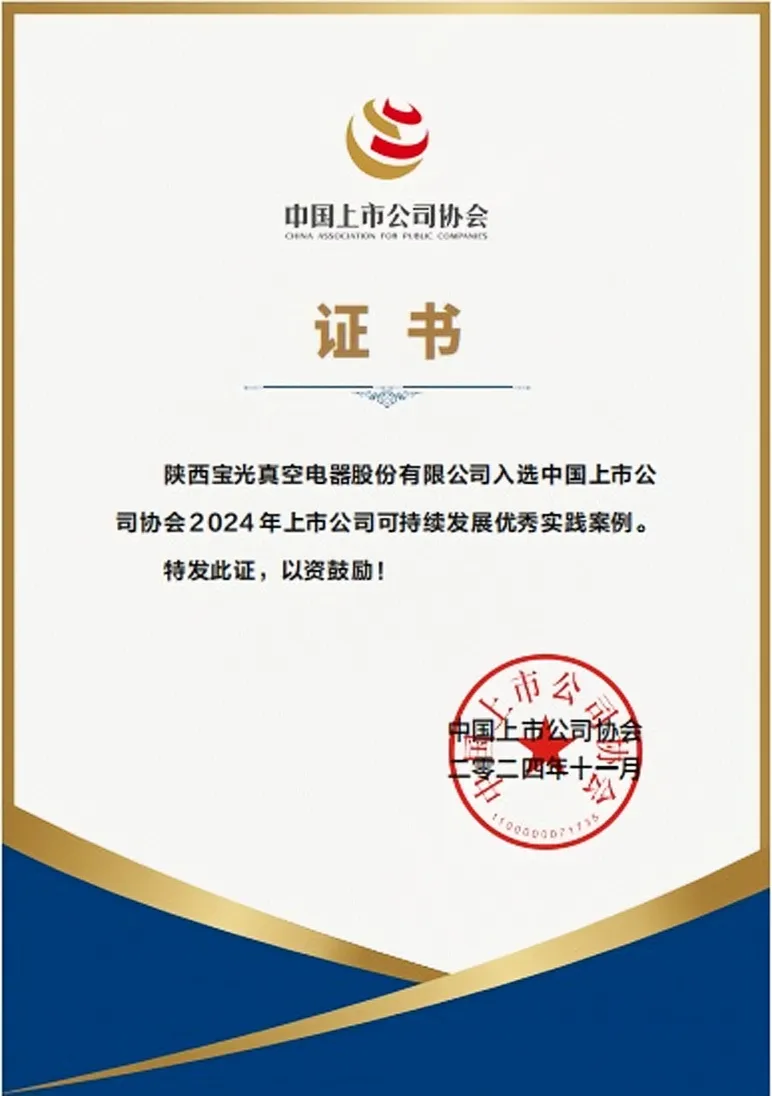 11月26日,中國上市公司協(xié)會發(fā)布“2024年上市公司可持續(xù)發(fā)展最佳及優(yōu)秀實踐案例”名單,寶光股份憑借在推動生態(tài)文明建設(shè)、履行社會責任、完善可持續(xù)治理體系等方面的優(yōu)秀做法,從596篇投稿案例中脫穎而出,成功入選“2024年上市公司可持續(xù)發(fā)展優(yōu)秀實踐案例名單”。這是公司繼2023年入選中國上市公司協(xié)會“上市公司ESG優(yōu)秀實踐案例”后,在可持續(xù)發(fā)展方面獲取的又一殊榮。這不僅是對寶光股份在可持續(xù)發(fā)展領(lǐng)域所做努力的認可,也是對未來發(fā)展?jié)摿Φ目隙ā?/span>