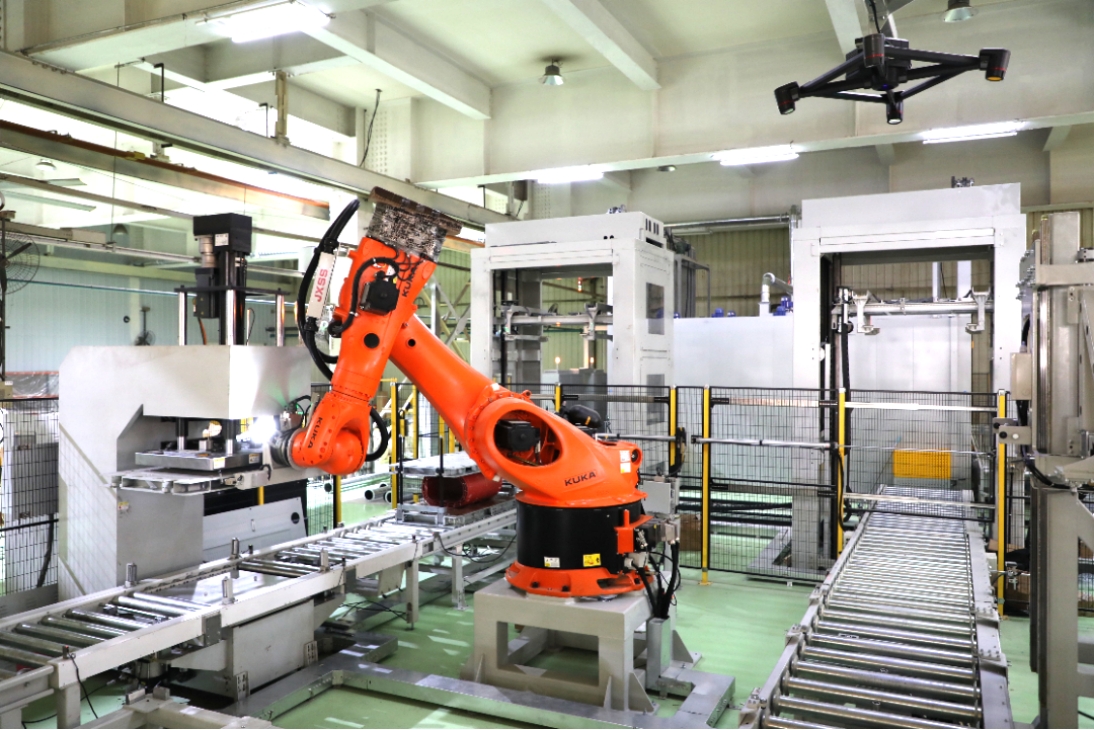 寶光股份充分應(yīng)用5S管理和定置管理等精益理念,通過(guò)對(duì)稱雙回字形布局實(shí)現(xiàn)生產(chǎn)現(xiàn)場(chǎng)面積最大化利用,7臺(tái)高檔數(shù)控設(shè)備和2臺(tái)工業(yè)機(jī)器人全部實(shí)現(xiàn)在線運(yùn)行監(jiān)測(cè)和故障診斷,設(shè)備狀態(tài)信息實(shí)時(shí)顯示和處理,有效保證人機(jī)協(xié)同作業(yè)的安全。產(chǎn)線的投入使用在降本的同時(shí)顯著提高零件生產(chǎn)質(zhì)量、效率和智能制造水平,目前,已累計(jì)加工導(dǎo)電桿零件8萬(wàn)余件,提高生產(chǎn)效率30%以上,零件生產(chǎn)周期縮短50%以上。