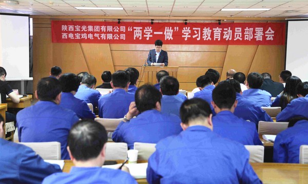 5月3日下午,寶光集團(tuán)、西電寶雞電氣“兩學(xué)一做”學(xué)習(xí)教育動員部署會在寶光集團(tuán)科技大樓二樓大會議室召開,寶光集團(tuán)、西電寶雞電氣班子成員,寶光股份高管人員,寶光集團(tuán)、西電寶雞電氣全體黨支部書記,以及黨群部門相關(guān)工作人員,共50余人參加會議。會議由寶光集團(tuán)董事長、總經(jīng)理李軍望主持。