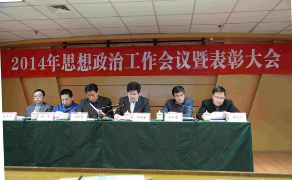 2月28日下午,公司2014年思想政治工作會議暨表彰大會在科技大樓二樓大會議室舉行。公司領導李軍望、付宗喜、岳永學、張軍、蔣華明、袁軍為參加了大會并在主席臺就坐,集團、股份公司全體黨支部書記、分會主席,及公司黨委、勞動競賽委、工會及團委系統(tǒng)2013年度受表彰的個人、集體、班組代表,近150人參加了會議。