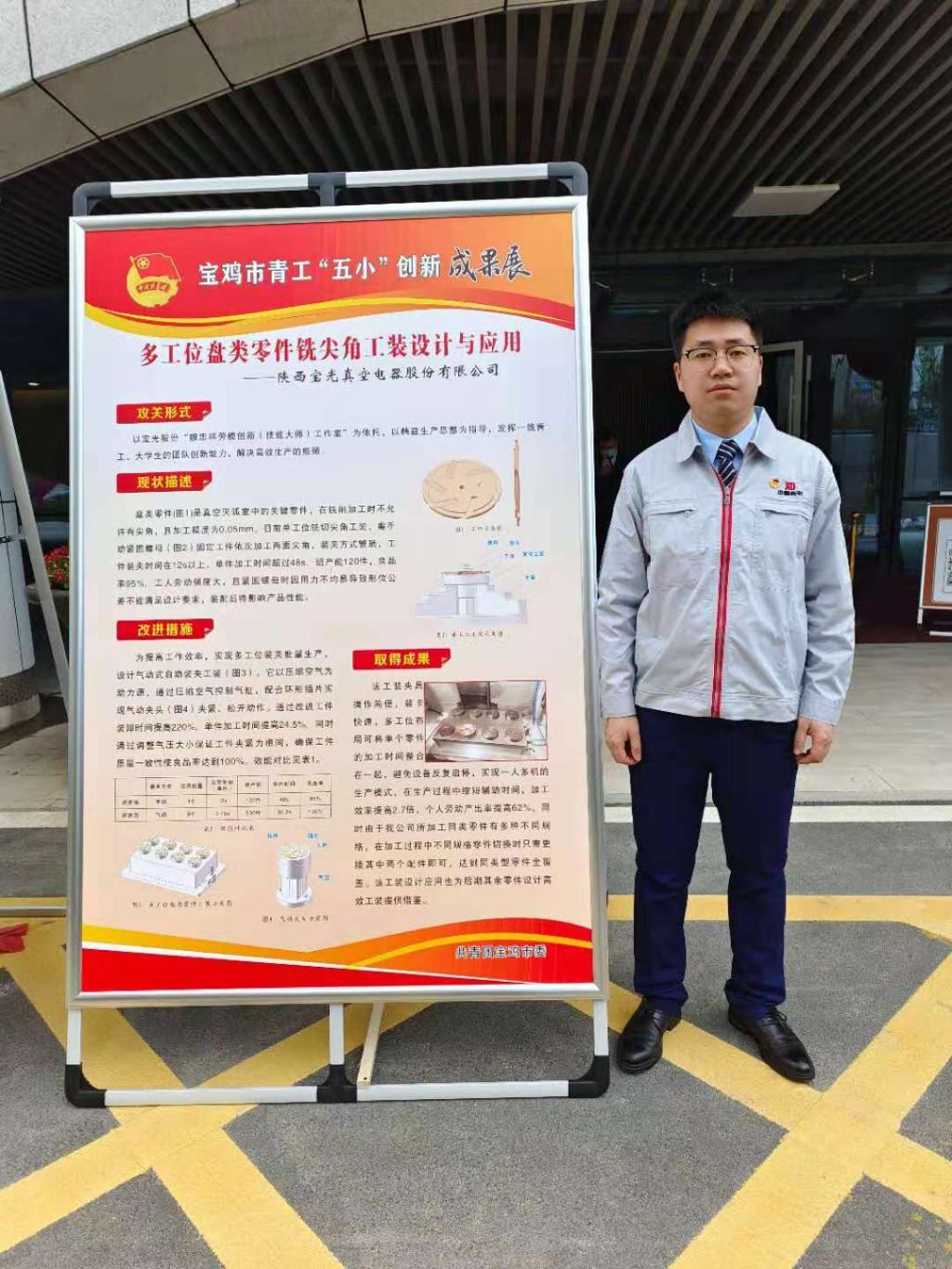 王棟,寶光股份零件產(chǎn)品制造部銑工,一個陽光、快樂而又熱衷創(chuàng)新的90后,4月28日,他所設(shè)計的《多工位盤類零件銑尖角工裝設(shè)計與應(yīng)用》項目進入寶雞市“五小創(chuàng)新” 名錄,同時他受邀代表全市青年在寶紀念五四運動102周年暨建團99周年大會期間向與會領(lǐng)導和嘉賓介紹了項目的設(shè)計及應(yīng)用情況,得到與會領(lǐng)導和嘉賓的充分肯定。