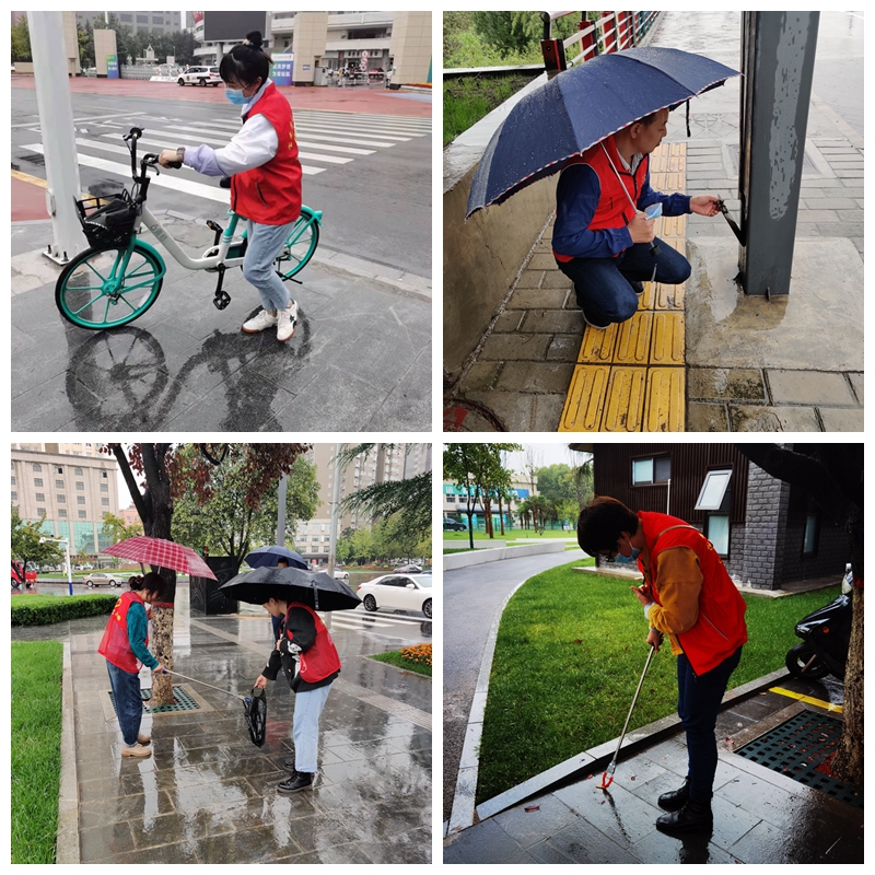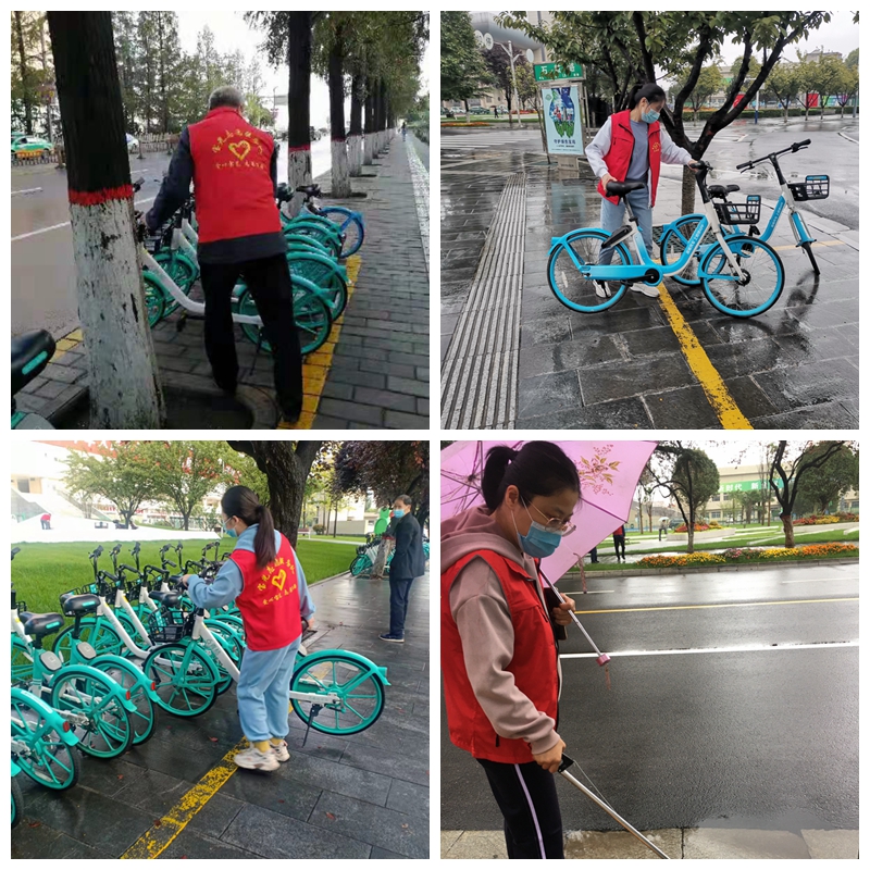 在近日連續(xù)強降雨的天氣里,志愿者們風(fēng)雨無阻每天早上堅持7:30按時到崗開展志愿服務(wù)活動。他們身穿紅馬甲,手拿垃圾夾,冒雨沿著金渭大橋南至寶光路轉(zhuǎn)盤巡回開展志愿活動,認真地清理路面上的碎紙屑、飲料罐、煙頭等垃圾。同時將共享單車擺放在規(guī)定的區(qū)域內(nèi),保持整齊美觀和人行道路的通暢。