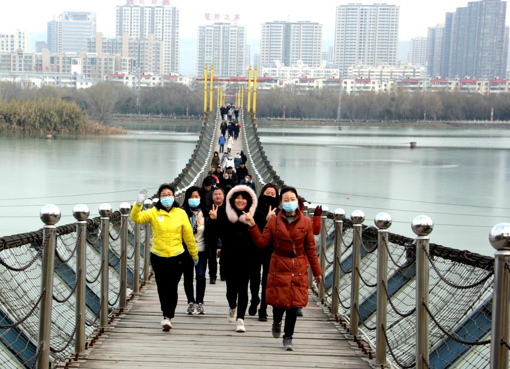 上午9:00,參加活動的職工集合在科技樓前,雖然天氣寒冷,但是職工們難掩心中的喜悅,熱情高漲。大家沿著既定線路,結(jié)伴而行,個個精神抖擻,沿著渭河岸邊的步行道闊步前行,一邊呼吸著新鮮的空氣,一邊交流著工作和生活,一路上有說有笑,不時發(fā)出開心的笑聲,感受著活動帶來的愉悅。一隊隊矯健的身影,成為冬日渭河兩岸最靚麗的風(fēng)景。