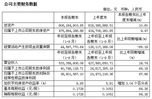寶光股份2016年3季度主要財(cái)務(wù)指標(biāo)