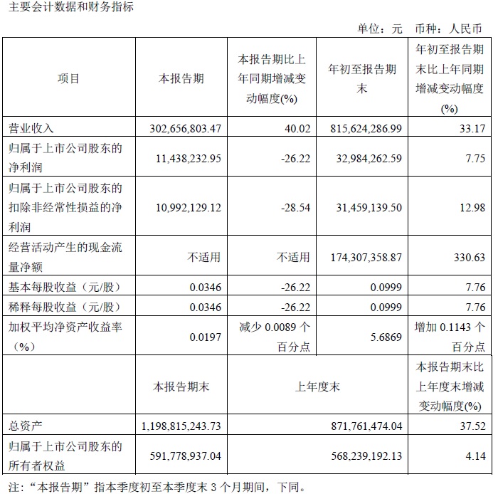 寶光股份2021年三季度主要財務(wù)指標(biāo)