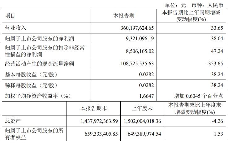 寶光股份2023年一季度主要財務(wù)指標(biāo)
