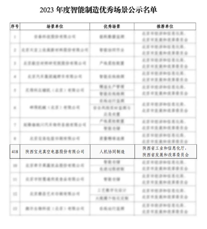 近期,工業(yè)和信息化部公布了“2023年度智能制造示范工廠(chǎng)揭榜單位和優(yōu)秀場(chǎng)景名單”,寶光股份申報(bào)的《真空滅弧室關(guān)鍵零件智能生產(chǎn)線(xiàn)》項(xiàng)目順利入選智能制造示范優(yōu)秀場(chǎng)景,標(biāo)志著寶光股份智能制造水平邁上新臺(tái)階。